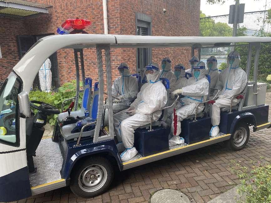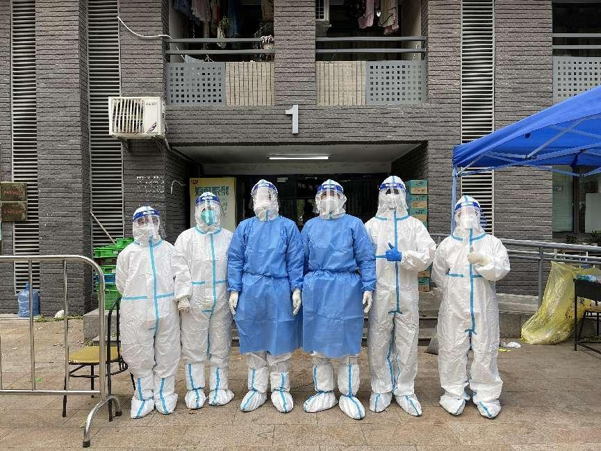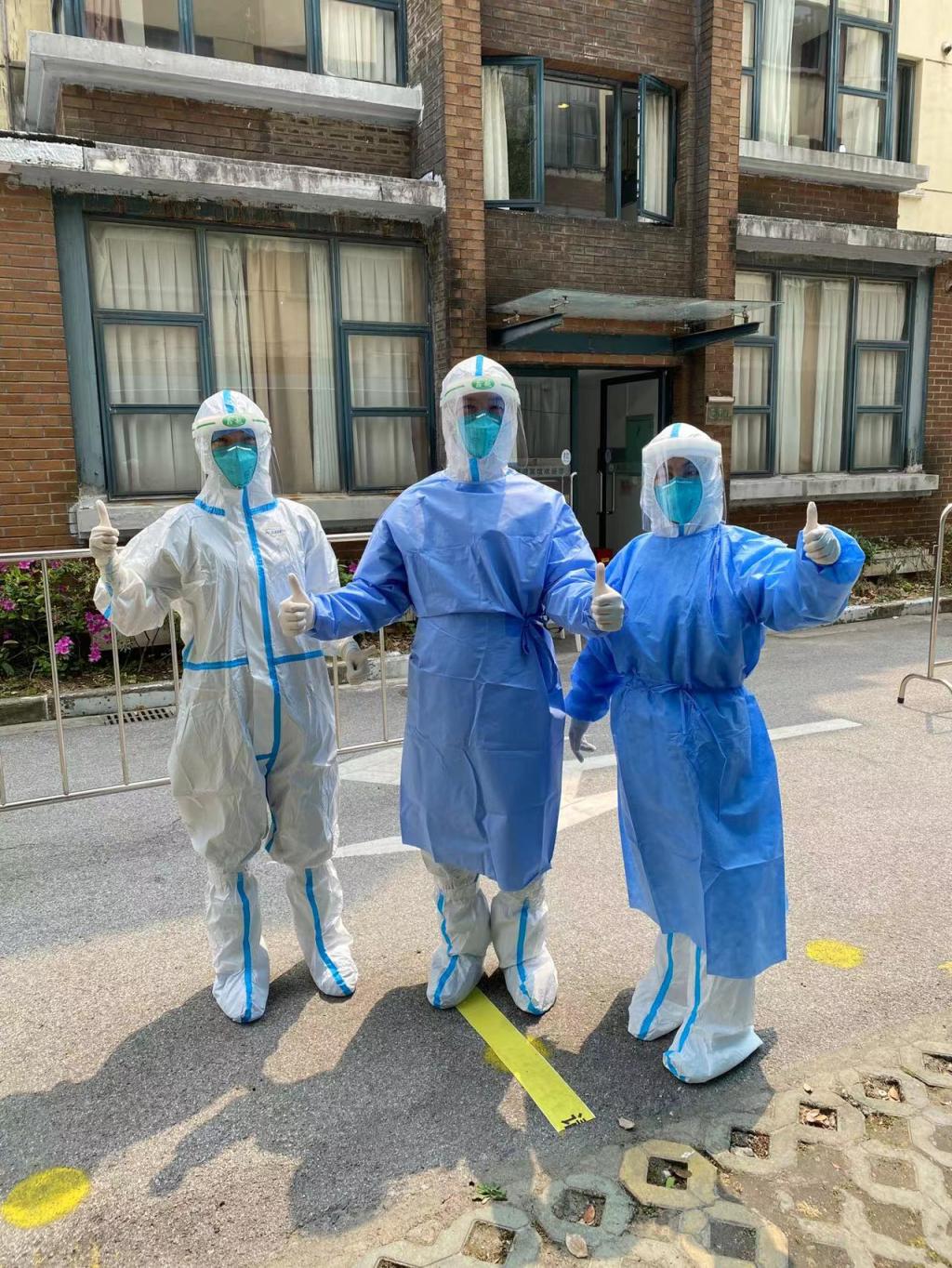 长期驻扎在嘉定校区的附属同济医院分院副院长潘菊萍说:“卫生所的医护们穿着一层又一层的防护服,戴着满是雾气的防护眼罩,头上扣着笨重的防护面罩,脸上戴着紧绷的口罩,每天往返多个检测点,为千余名师生采集咽拭子标本,且一住就是一个半月。”