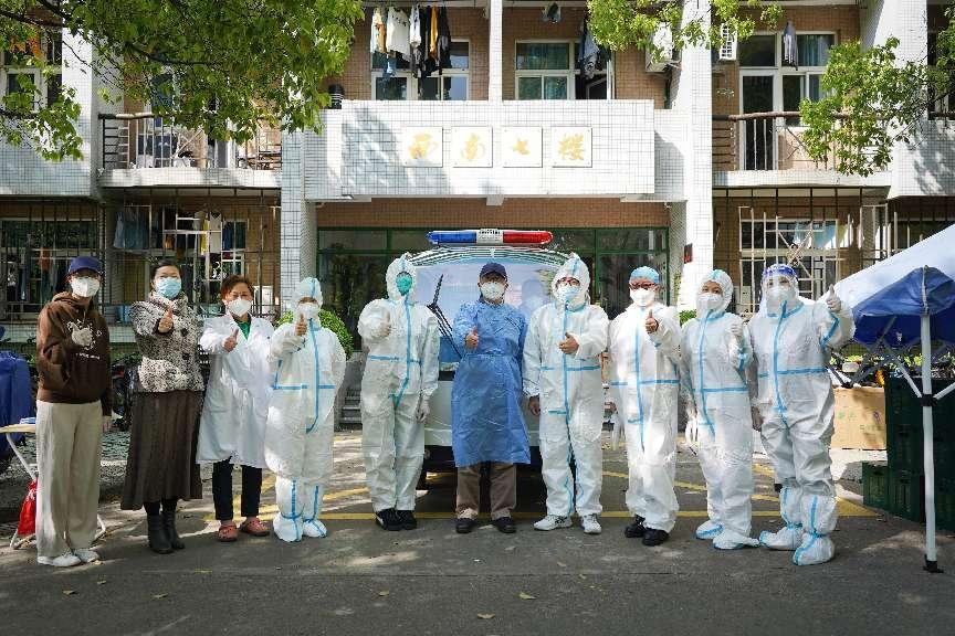负责彰武路校区封控楼的附属同济医院分院急诊护士长曹翠萍说:“面对疫情,没有一个人喊苦喊累。我们和附属肺科医院驻守在彰武路校区的医生们组队,队员们早已习惯了每天的突发、每天的应急……”