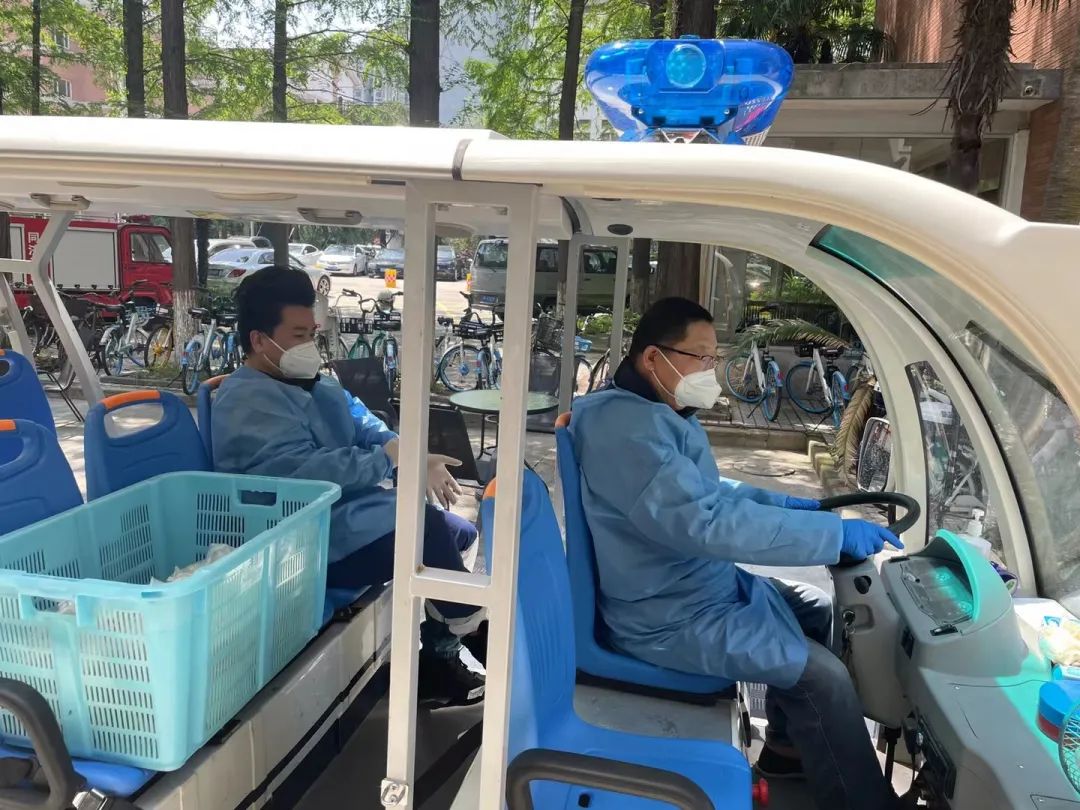 在校园执勤、安全管控和值班警戒任务以外,保卫处坚持做好疫情防控和校园运转的各项保障工作。注重把手上的装备用到位,只要有需要,立足现有的电动巡逻车,进行校园的短驳和接送工作,人停车不停。运输工作停不下来,持续在校内流转,源源不断地送物资、送器材、送人员。从流调组临时进驻的第一天开始,校卫队监控中心的4名队员全员投入工作中,调取监控,追迹溯源,保障流调工作顺利展开。保卫处始终坚持立足校园疫情防控大局,全力做好保障配合。