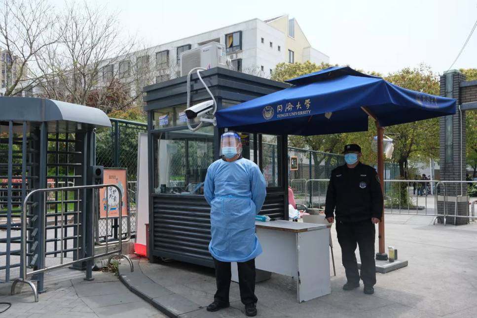 沪西保卫办张骏,既是战斗员又是指挥员,在疫情防控的全过程中,迅速落实工作,奔波于校区的各个点位,及时掌握和反馈情况,毫无怨言。四平路1239号门卫班组今年3月刚刚完成交接,但整个队伍进入情况快,执勤到位,自校园封闭以来只有10人白天黑夜轮转,承担了门卫以外的很多任务,动作快、标准高。