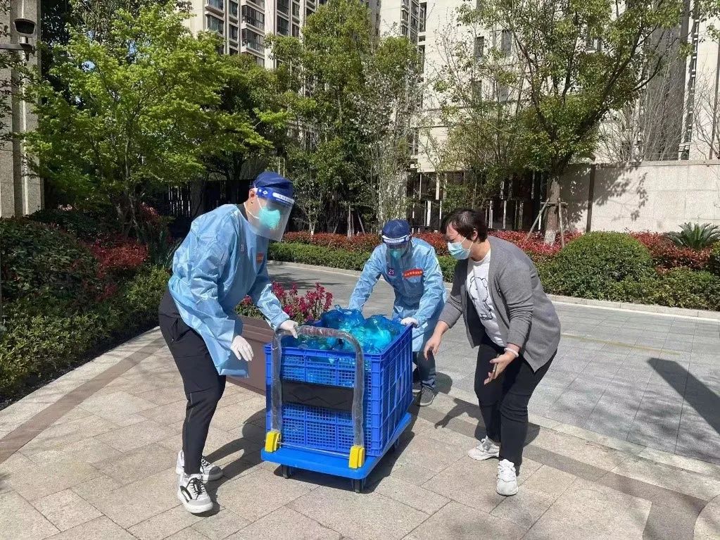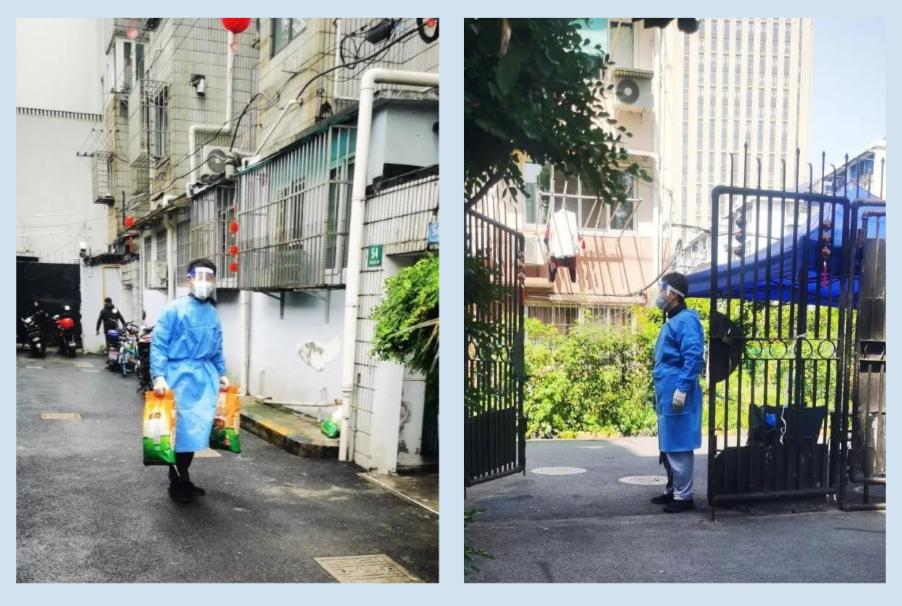 邓子龙老师在社区紧急进入封闭状态时,主动请缨加入到居民区党员先锋抗疫志愿者队伍,除了基本的核酸保障工作,邓子龙老师也当起了社区居民的送餐员和搬运工。