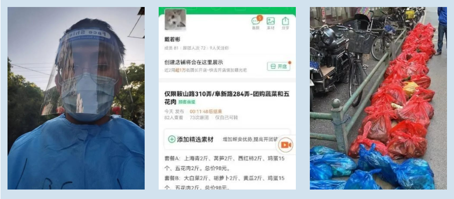 闫凯丽老师在社区担任楼长,负责居民的买菜团购,协调生活物资分发。