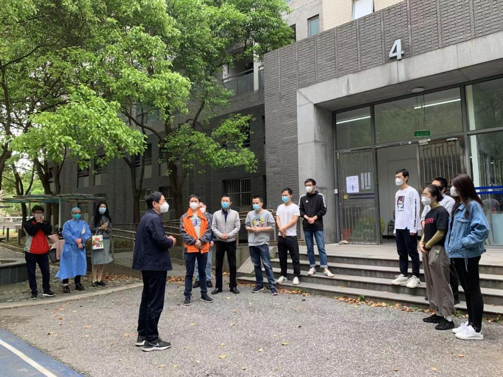 4月27日,由于上级部门工作调整,这10名医生要暂时告别彰武路校区。上午10点,彰武路校区4号楼门前,校党委副书记吴广明带队送别了队员们。校办、航空航天与力学学院、附属同济医院分院主要负责人参加了短暂的送别仪式。
