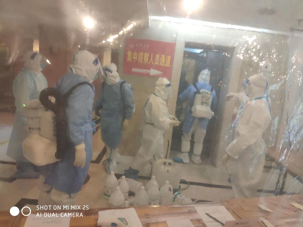 迎宾馆和干训楼按学校要求做好密接者及返校师生隔离观察的日常工作。4月初开始,两个隔离点入住了确诊病例。针对本轮疫情的严重性和复杂性,隔离点压实消毒防疫关键环节,强化员工管理,按要求完成抗原及核酸检测安排,做到防疫不放松,安全无小事。