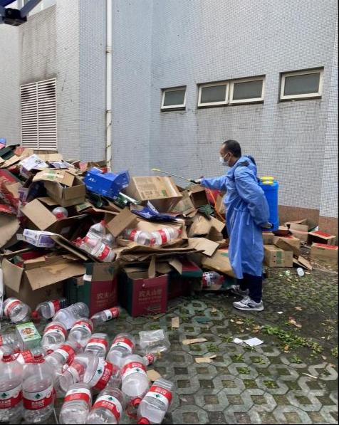 学校封控管理期间,生活垃圾产量激增50%,校容的保障压力也达到了前所未有的高度,清运和压缩工作量翻了一倍。物业公司组织员工有序清运、日产日清,确保校园垃圾及时处理,严格避免垃圾滞留引发二次污染。消杀工作也是疫情防控工作的重要环节,物业公司组织协调各个楼宇物管处,组建专门负责消杀的工作团队,每日不间断开展消杀工作。
