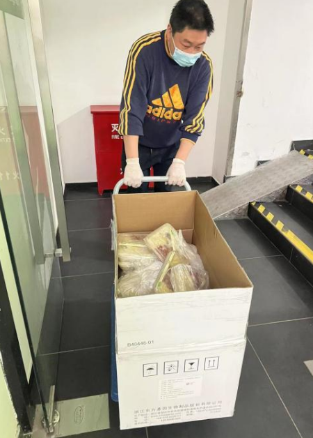 采购部员工在领导带领下全方位、多渠道紧急调取供应商,24小时“在线”沟通食品原材料、一次性餐具等采购任务,至今已完成了采购原材料1200余吨、一次性打包餐盒800000只、筷子989000双及包装袋保温袋758600只。