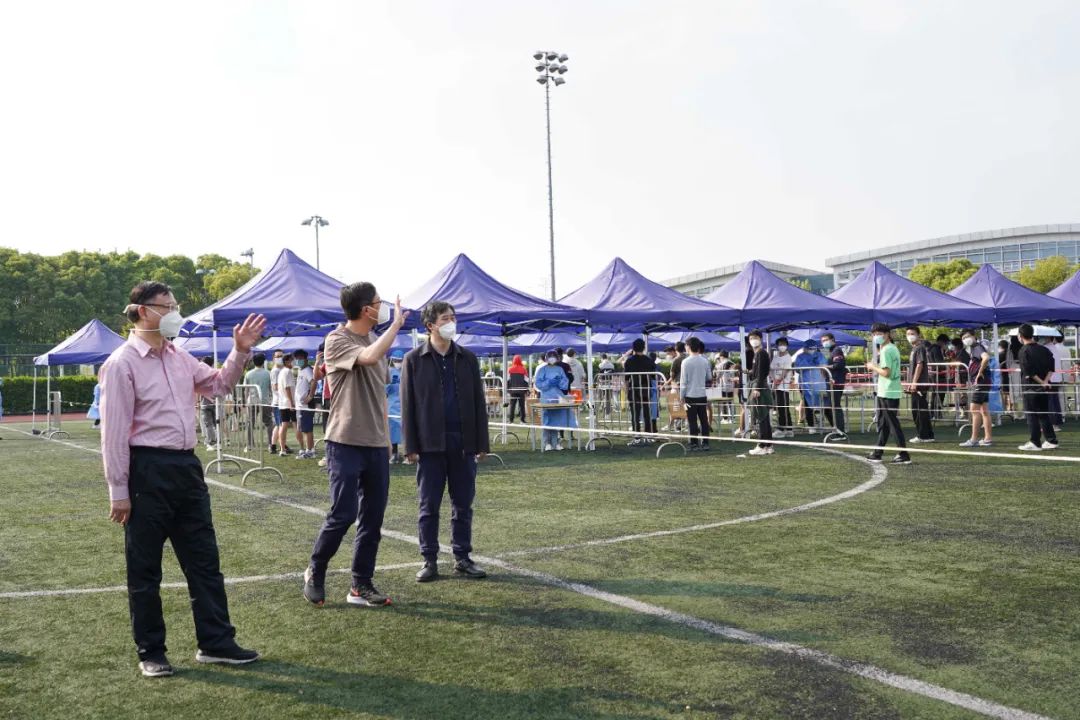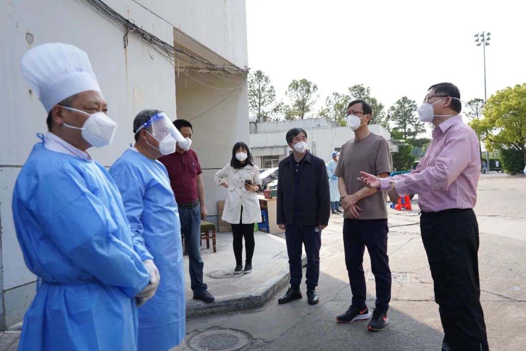“谢谢你们,这段时间大家都辛苦了!”5月3日下午,校党委书记方守恩、校长陈杰来到嘉定校区,检查指导校区疫情防控工作,向奋战在一线的师生员工和志愿者们致以诚挚的问候和衷心的感谢,对校区的一些特色做法表示肯定,希望大家不断探索好做法、好经验,既守护校园平安,又给予学生关爱关怀。驻守在嘉定校区的校党委常务副书记冯身洪、副校长童小华随同检查指导。