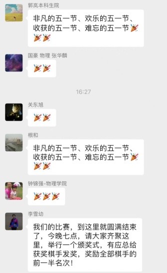 两天9轮的比赛紧张激烈且秩序井然。在比赛过程中,选手们服从和配合裁判长、编排和裁判的指令,保证了赛程顺畅圆满,显示出同济师生良好的综合素养和对象棋事业的热爱。赛后学生在各种信息媒体、朋友圈发表感想:“非凡的五一节,欢乐的五一节,收获的五一节,难忘的五一节”。“能在网络上快速组织这样的校园比赛,秩序如此之好之流畅,确实只能是同济了”,本次赛事协办单位、资助者,爱点击集团公司副总经理应建波在历经赛事全过程之后感概地说。