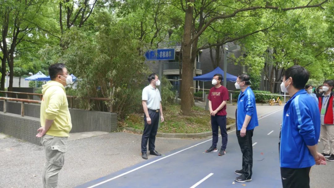 在各片区、社区、学院等处,方守恩、陈杰听取了疫情防控工作和网格化管理试行情况的介绍,向一直坚守在一线的师生员工们表示衷心的感谢。方守恩、陈杰指出,当前,上海疫情防控正处于“逆水行舟、不进则退”的关键时期,我们要做到不麻痹、不厌战、不侥幸、不松劲,继续全面从严落实校园疫情防控各项措施,坚定必胜信心。各片区、社区要根据各自疫情防控的实际,不断优化学生出楼户外活动方案,鼓励学生多出楼在户外适度活动、放松身心。要全力抓好环境消杀,引导师生做好个人防护,志愿者要加强自身防护。学院要重视关心关爱师生员工的身心健康,尽可能解决特殊时期师生员工的诉求,凝聚共同抗疫的强大合力。在一手抓好防疫工作的同时,也要保障好教学、科研等各项工作有序开展。