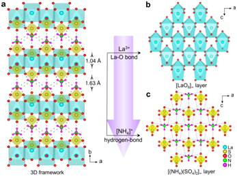 日前,张弛院士研究团队还以非π-共轭硫酸盐为研究对象,提出了一种复合阳离子盐策略,构建了一例具有强倍频效应的稀土基硫酸盐深紫外二阶非线性光学晶态材料。相关成果“A Lanthanum Ammonium Sulfate Double Salt with a Strong SHG Response and Wide Deep-UV Transparency”(一种具有强倍频响应和宽深紫外透过的硫酸镧铵复合盐)日前以通讯形式在线发表于《德国应用化学》(Angew. Chem. Int. Ed., 2022, 61(6), e202115855)。