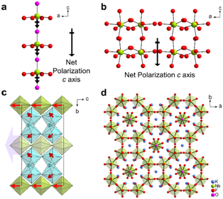 张弛研究团队通过单晶X射线衍射结构分析,揭示了KNOF分子结构中富极氟阴离子的[NbO2F4]和[NbF7]金属铌中心多面体对材料线性和二阶非线性光学性能的影响机制。氟阴离子充当了化学“剪刀”,使得结构由一维的[NbO2F4]∞链和分离的[NbF7]多面体构成,进而有效地降低了结构的维度。受到二阶姜-泰勒效应的影响,铌阳离子形成了部分氟化的[NbO2F4]八面体和完全氟化的[NbF7]多面体。这些畸变的多面体沿着c轴一致对齐排列,有利于产生大的倍频效应。在铌中心多面体中,增加氟氧比例,可以抑制以氧2p电子轨道为主的价带顶部向高能量处移动。KNOF中的氟氧比远高于其它过渡金属氧氟化物,这种富氟环境不仅削弱了[NbO2F4]基团中铌阳离子与氧之间的相互作用,而且也促使结构形成有序且完全氟化的[NbF7]基团,这两种富氟基团都拓宽了紫外光的透明范围。研究团队还进一步运用第一性原理理论模拟计算,深入探讨并阐明了KNOF可同时实现强倍频效应和宽带隙的内在物理机制,阐释了强倍频效应主要原因是高度扭曲的部分氟化[NbO2F4]和完全氟化[NbF7F4]多面体的有序排列,而宽带隙来源于材料结构中高度氟化的过渡金属中心多面体。该无机晶体KNOF兼具宽的光学带隙(5.88 eV, 对应于紫外吸收截止边211 nm日盲紫外区)和强的倍频响应(4.0 × KH2PO4 @ 1064 nm),以及适中的双折射率(0.07 @ 546 nm)。该研究为探索短波紫外透过的二阶非线性光学晶体材料提供了一种新的研究设计思路。