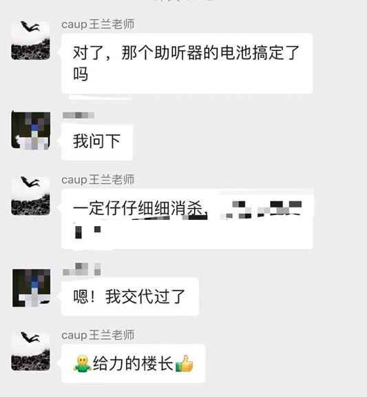 在这一栋有着575名学生的宿舍楼里,学生们有着各种情况,王兰都竭尽全力帮助解决同学们的困难,比如学生的助听器电池和隐形眼镜等必备生活物资需要进行更换,她积极和学校保持沟通,最终顺利帮助大家解决困难。