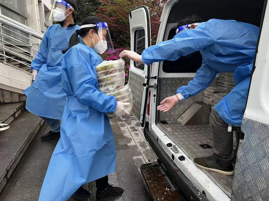 视频会、沟通会,人员调度,送饭送货,每天给困难师生电话……学院患病教师、退休教师、去方舱的师生、学习困难的师生,都能充分感受到刘颂老师的关心,传递出的信心和力量。24小时坐镇指挥的她,在繁忙工作之间坚持到一线与师生面对面,答疑解惑,安抚情绪,同时也将获一手资料向上级献言献策,以期更好地做好师生服务……