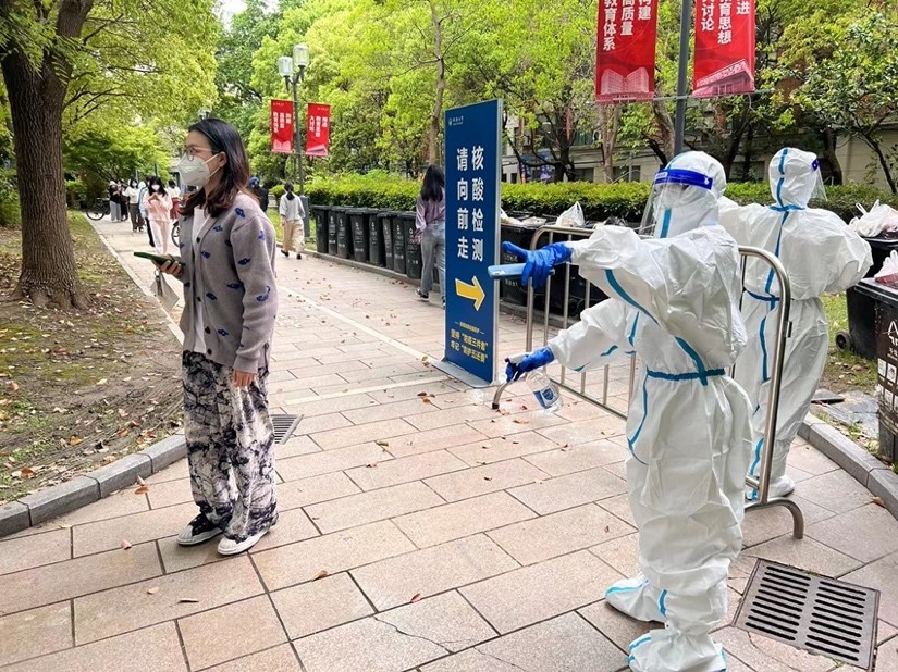 封控管理期间,1号楼每日进行核酸检测,王兰都会在现场进行监督和指挥,提醒学生保持两米间距,并及时进行消杀。