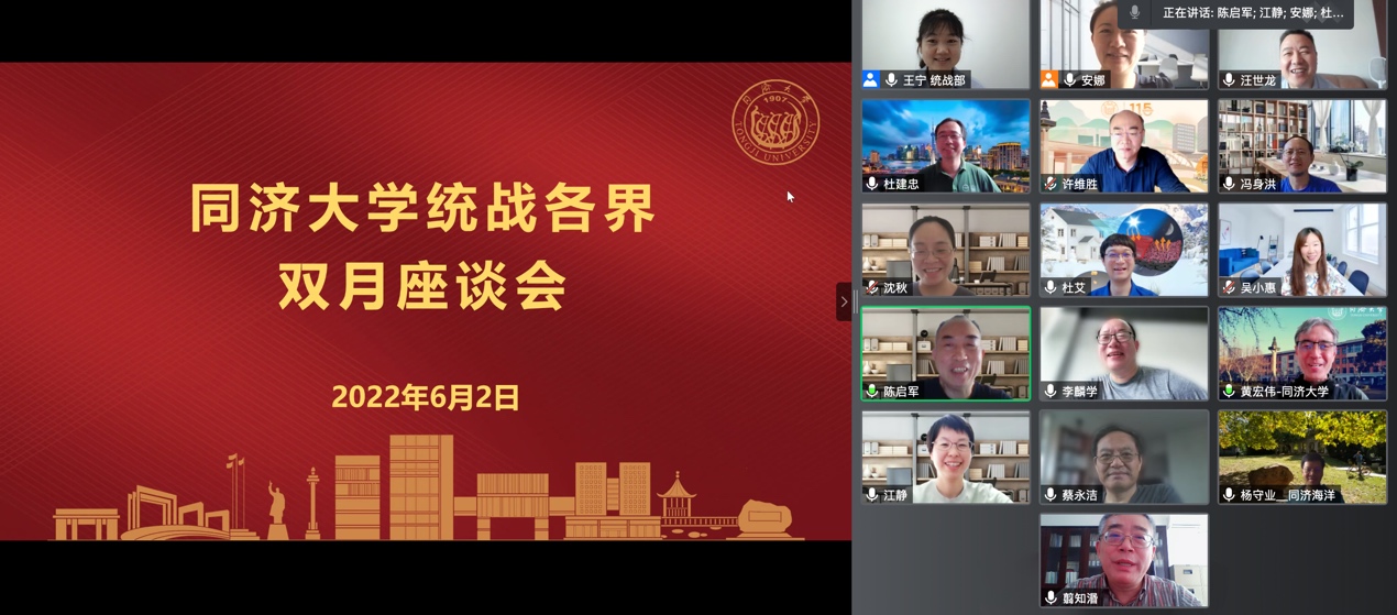 听取与会人员汇报交流后,冯身洪在总结讲话中,充分肯定了我校统战各界人士积极投身学校、上海市疫情防控一线、献策出力,发挥了统一战线的独特优势作用,展现了责任担当和乐观精神。对付出心血的每一位统一战线成员表示衷心感谢,统战各界人士围绕疫情防控建言献策、提交社情民意,不断传播同济精神、发出同济声音,各民主党派和统战团体关心成员,尤其是年迈体弱的退休教师,为学校分担压力,共克时艰,充分展现了同济大家庭的温暖。二是希望统战各界人士及时总结反思疫情防控工作,为上海市、学校未来发展以及应急事件处置预案提供决策参考。三是希望各民主党派和统战团体根据年初制定的工作计划,有序推进修史等各项工作,庆祝中国共产党统一战线政策提出100周年。四是通报了学校近期疫情防控工作和未来有序恢复正常教学和科研工作的预案。