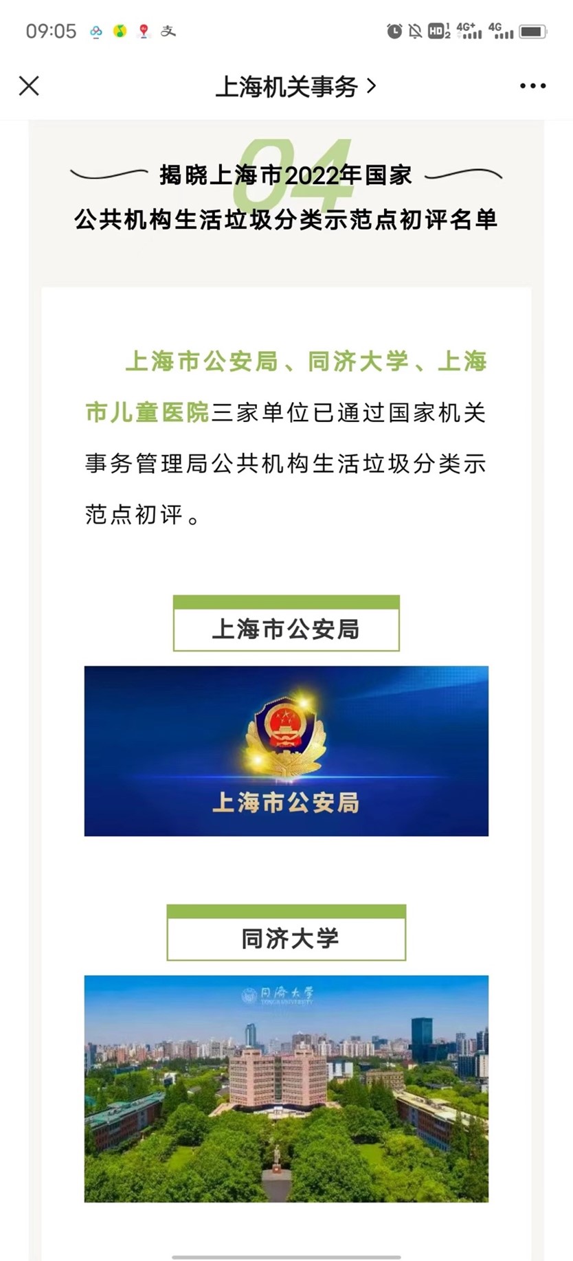 近日,同济大学通过国家机关事务管理局公共机构生活垃圾分类示范点初评,将作为上海市3家入选单位之一,进入全国范围内的评选。