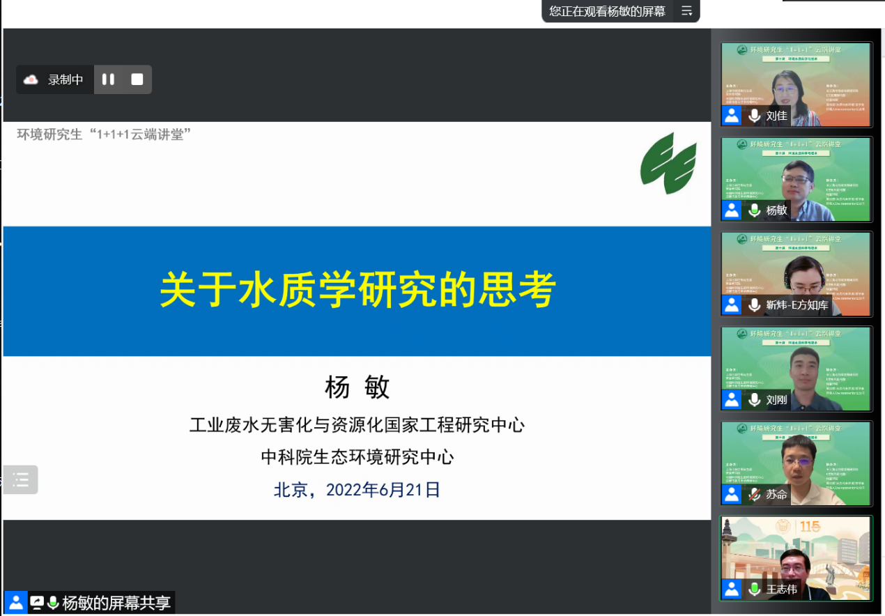 6月21日,由同济大学环境学科牵头建设的上海市环境与生态高峰学科,联合中国科学院生态环境研究中心文献信息与学术传播中心和上海同济高廷耀环保科技发展基金会等单位,面向全国环境学科研究生举办了第一期全国环境研究生“1+1+1云端讲堂”课程第十讲暨结业仪式。