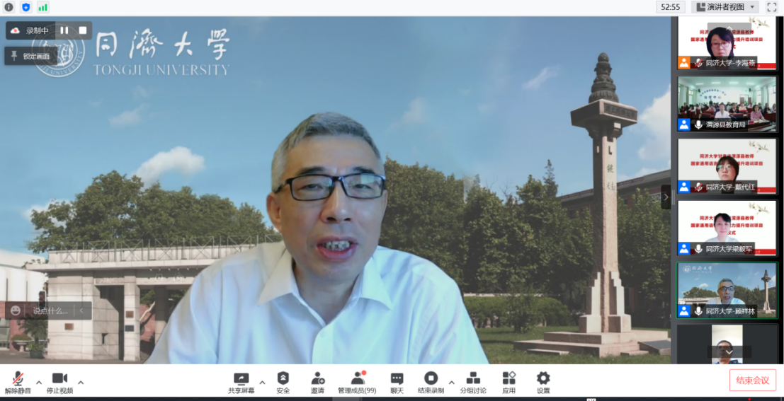 6月22日,同济大学对口甘肃省渭源县教师国家通用语言文字能力提升培训开班仪式在线举行。同济大学副校长、国家语言文字推广基地主任顾祥林,甘肃省渭源县人民政府副县长沈剑虹,我校国际文化交流学院、本科生院、甘肃省渭源县教育局负责人,及同济大学培训团队全体成员和百余名学员出席了开班式。