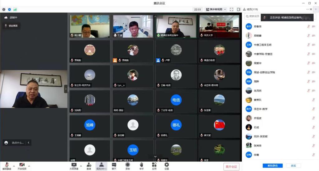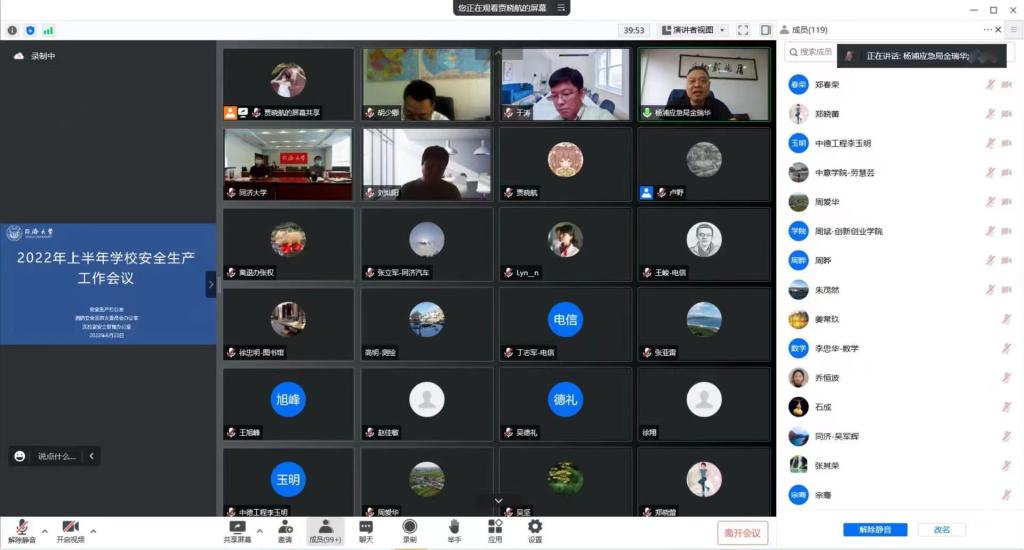 6月23日,学校召开2022年上半年安全生产线上工作会议。校党委副书记彭震伟、副校长黄翔峰出席会议并讲话。杨浦区应急管理局副局长金瑞华受邀参会并作工作报告。学校安全生产委员会成员单位、实验室安全工作领导小组成员单位、消防安全及防火委员会成员单位和学校二级单位等安全负责人130余人参加会议。