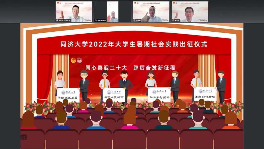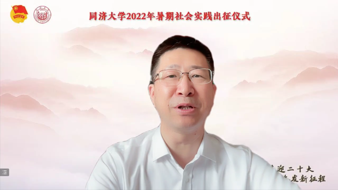 7月3日,同济大学2022年暑期社会实践出征仪式在线举行,校党委副书记彭震伟,党委学研工部、党委宣传部、校团委负责人及各学院团委书记、指导教师代表和参与实践的学生出席活动。