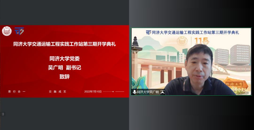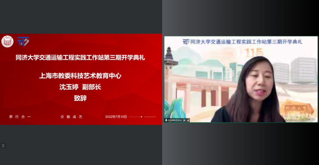 7月10日,上海市青少年科学创新实践工作站-同济大学交通运输工程实践工作站第三期开学典礼暨基础课程教学活动在线举行。上海市科艺中心科技教育部副部长沈玉婷,我校党委副书记吴广明、科研管理部、交通运输工程学院负责人,以及来自上海市控江中学、徐汇中学、晋元中学和曹杨第二中学实践点的120名师生参加了典礼。