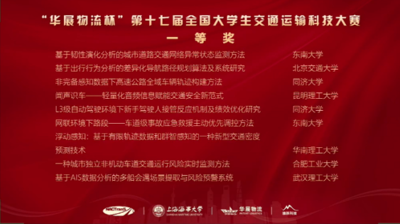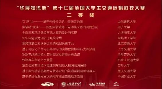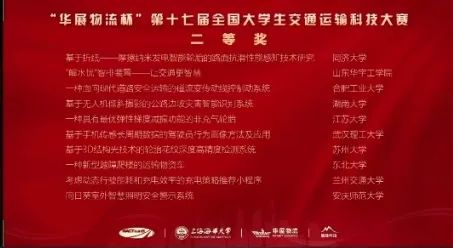 7月10日,“华展物流杯”第十七届全国大学生交通运输科技大赛成绩揭晓。我校交通运输工程学院推荐的参赛作品在大赛中喜获佳绩,共有6个项目获奖,其中一等奖、二等奖各3项。