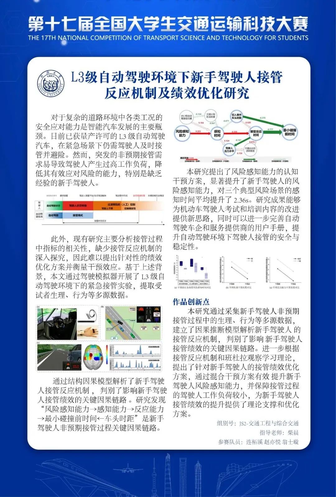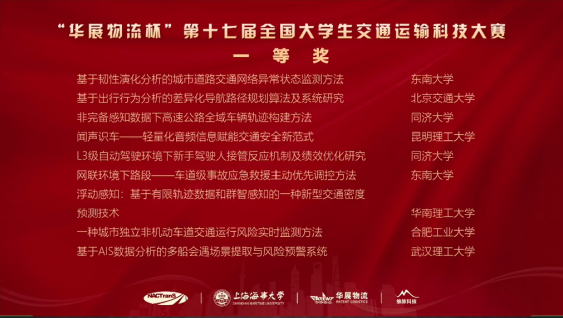 同济学子在第十七届全国大学生交通运输科技大赛中获一等奖3项、二等奖3项