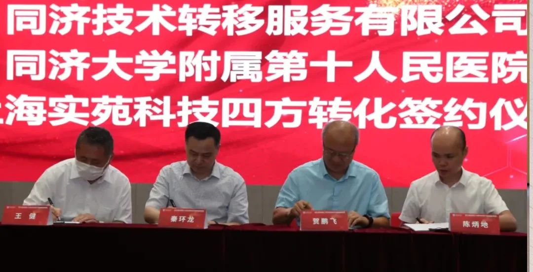 随后,同济大学国家大学科技园十院临床医学科创园揭牌。同济创新创业控股有限公司与上海实苑科技战略合作签约。致慧医疗科技有限公司、同济技术转移服务有限公司、同济大学附属第十人民医院、上海实苑科技四方转化签约。