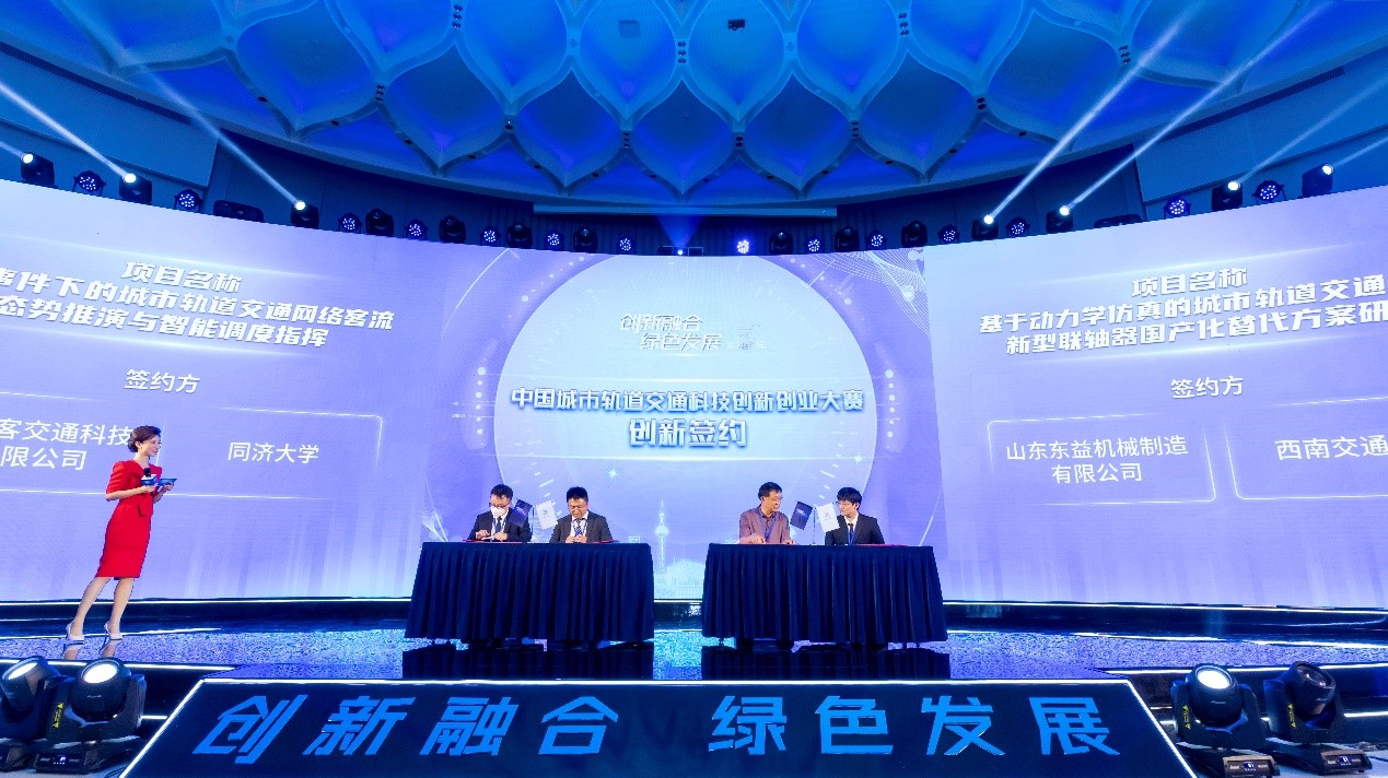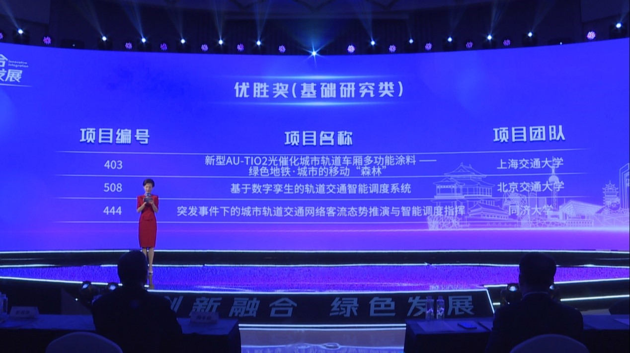 面对世界格局变化新机遇,站在“十四五”规划开局新征程,在国家大力推进“交通强国”的战略引领下,7月23日,由北京城建设计发展集团联合同济大学、清华大学、北京交通大学、西南交通大学、深圳大学共同主办的第三届中国城市轨道交通科技创新创业大赛全国总决赛暨颁奖盛典在京举行。同济大学共荣获1个优胜奖、3个创新奖以及1个(唯一一个)最受市场关注项目奖。