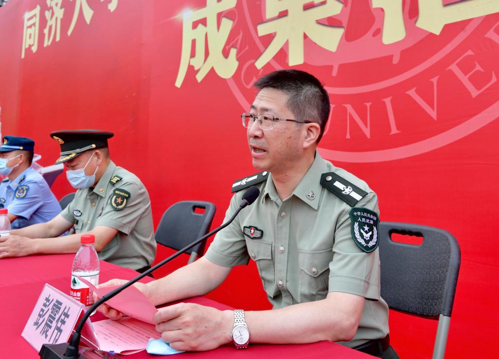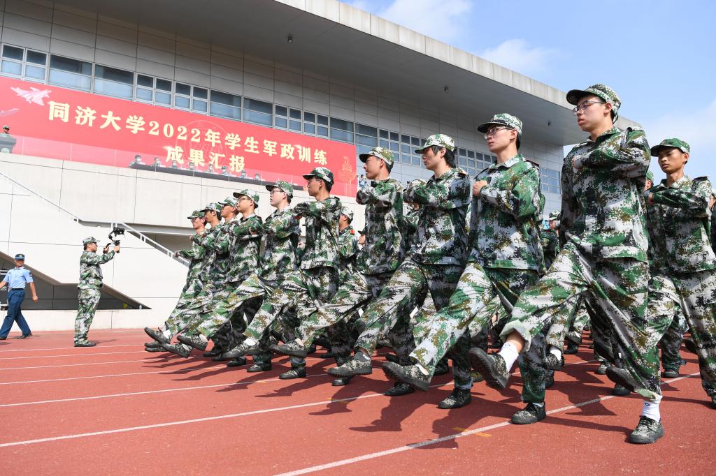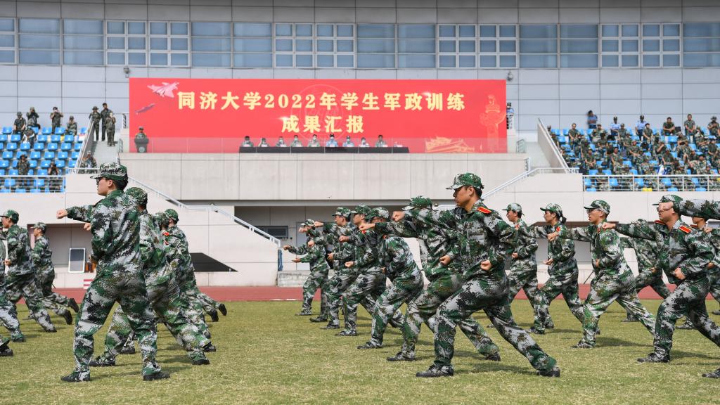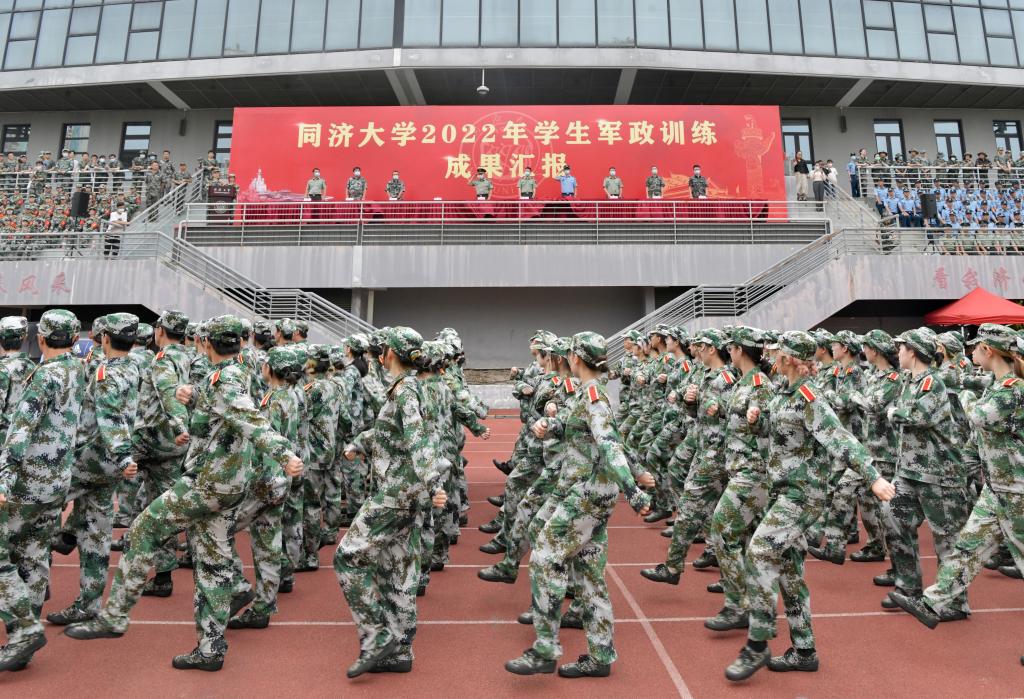 8月25日,同济大学2022年学生军政训练总结大会分别在四平路校区一•二九田径场、嘉定校区训练场举行,汇报军训成果。校党委副书记、军训领导小组组长彭震伟,杨浦区人民武装部部长程宝根,军训旅旅参谋长周尔东,军训旅一团、二团以及学校相关部门负责人出席大会。