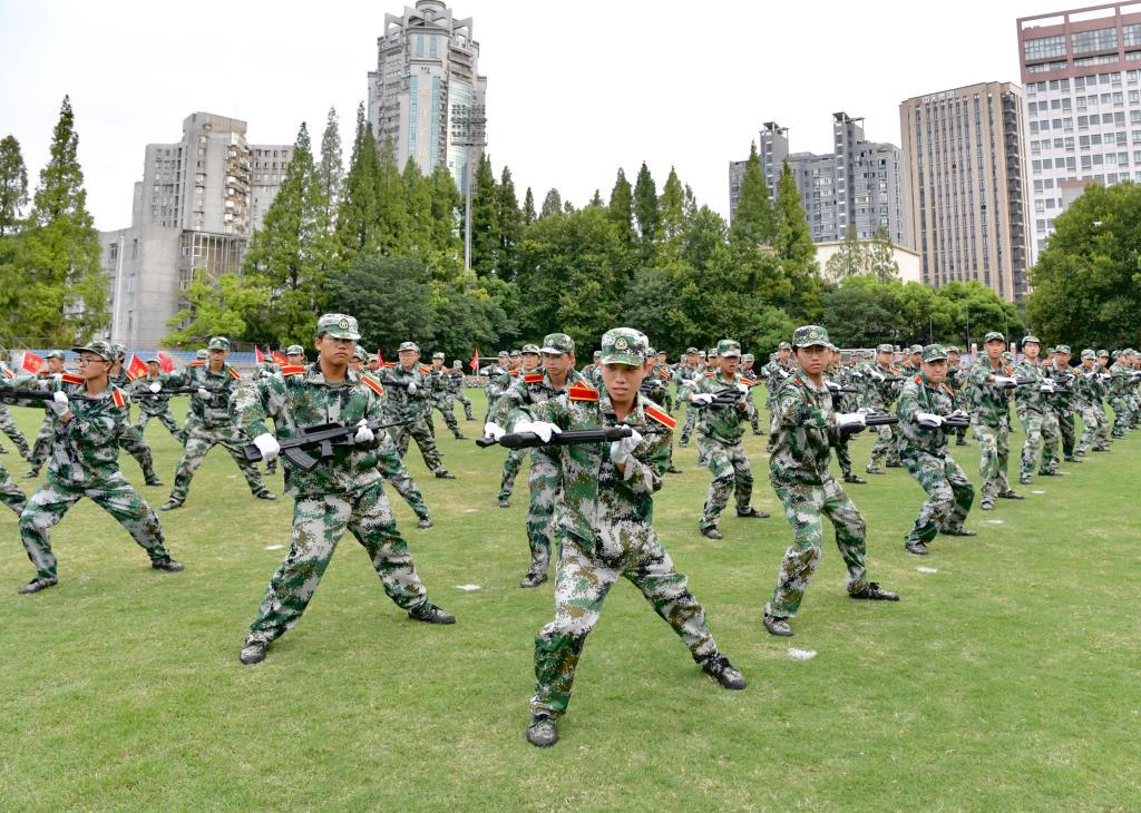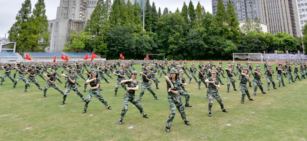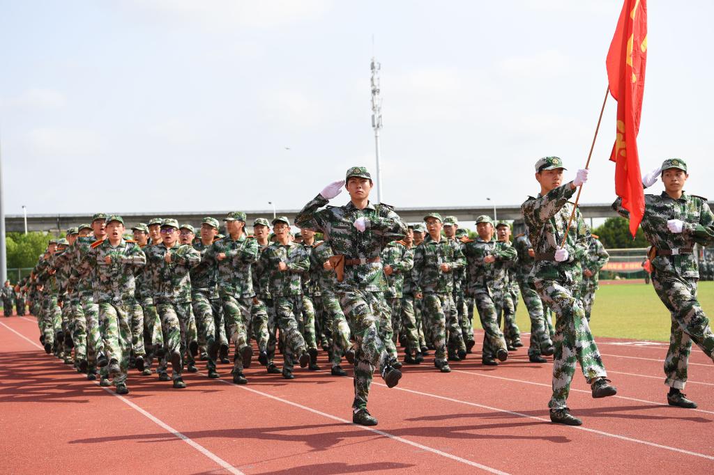 大会在慷慨激昂的军歌声中落下帷幕。此次军政训练时间为8月13日至26日,今年的军训结合防疫要求、连日高温与军训实际需要,继续采用了“6+8”线上线下相结合施训的方式,顺利保障了军训各项工作的圆满完成。军训期间通过在线上开设防疫专题讲座、观看军事纪录片与爱国主义电影、举行主题演讲比赛,在线下开展内务评比、行军拉练、VR模拟射击、“薪火杯”龙舟赛,以及根据新教学大纲要求首次开展的识图用图、核生化防护、野外生存训练等一系列训练及活动,构建出具有同济特色的立德树人军政训练育人模式。学校2021级4300名本科生、150名随训教师、120名教官参加了军训。(图/江平、周游)