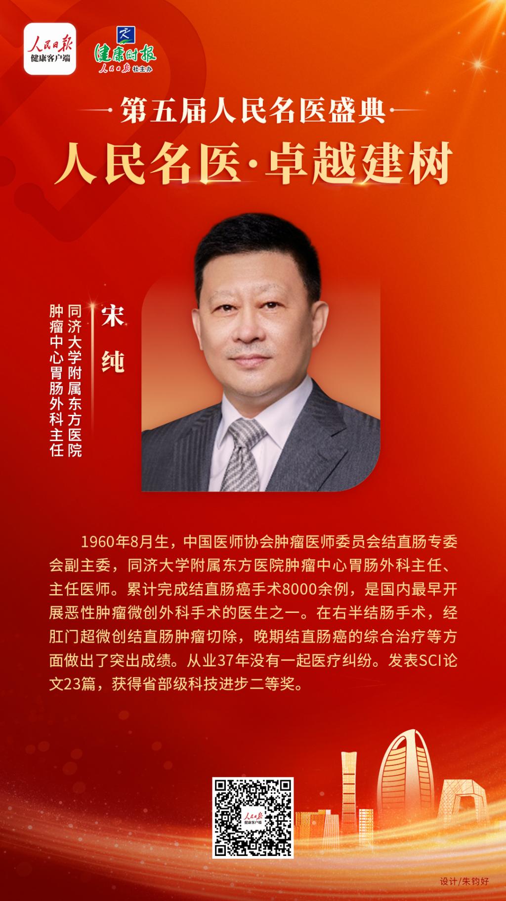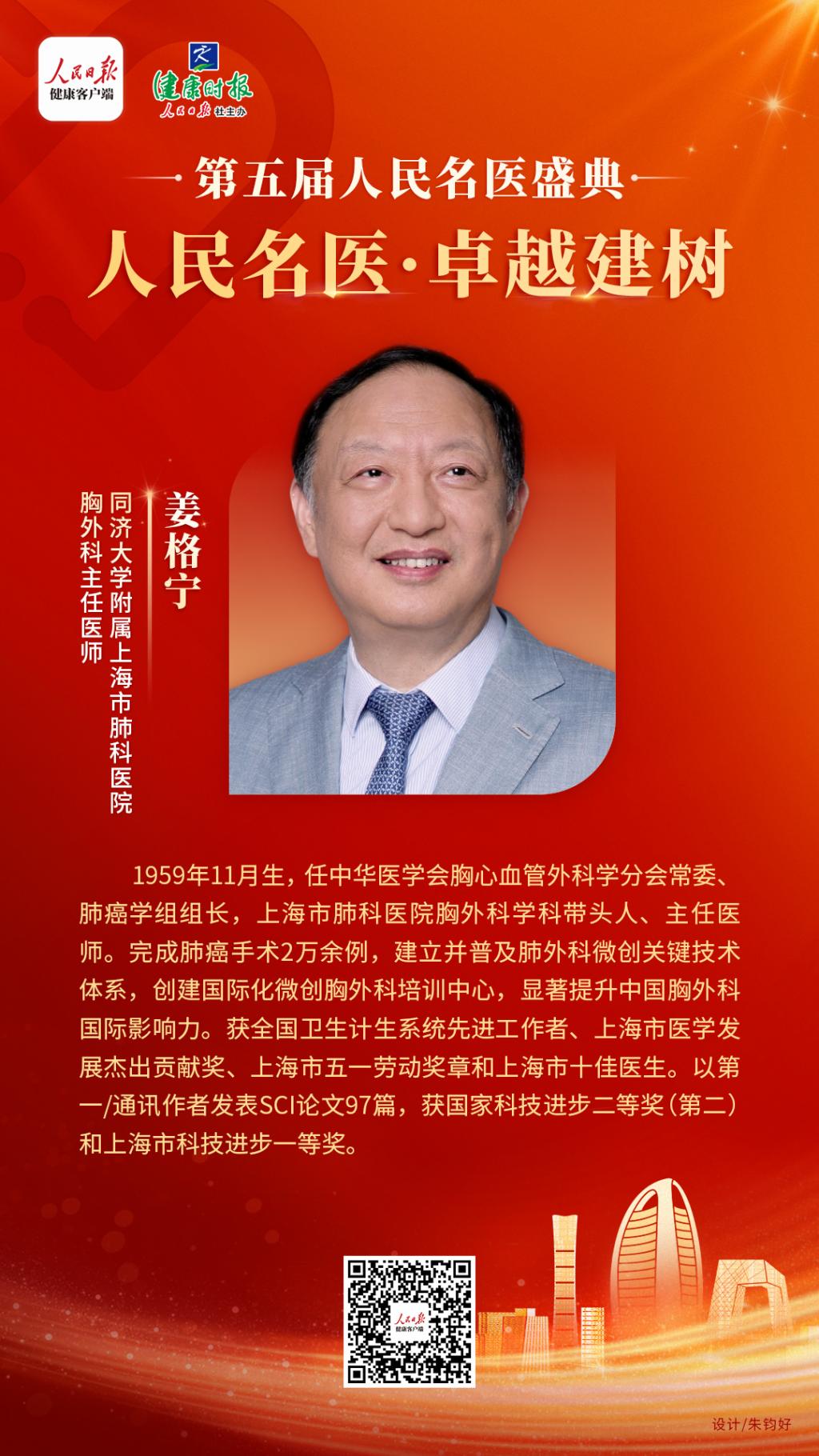 8月16日,由人民日报健康客户端、健康时报主办的第五届人民名医盛典(原国之名医盛典)举行,来自全国117个学科(含亚学科或重大疾病组)的296名优秀医生代表入选第五届人民名医系列榜单。同济大学附属上海市肺科医院姜格宁、附属东方医院宋纯、附属东方医院江华3人获评“人民名医·卓越建树”,附属第一妇婴保健院应豪、附属东方医院郭晔2人获评“第五届人民名医·优秀风范”奖。