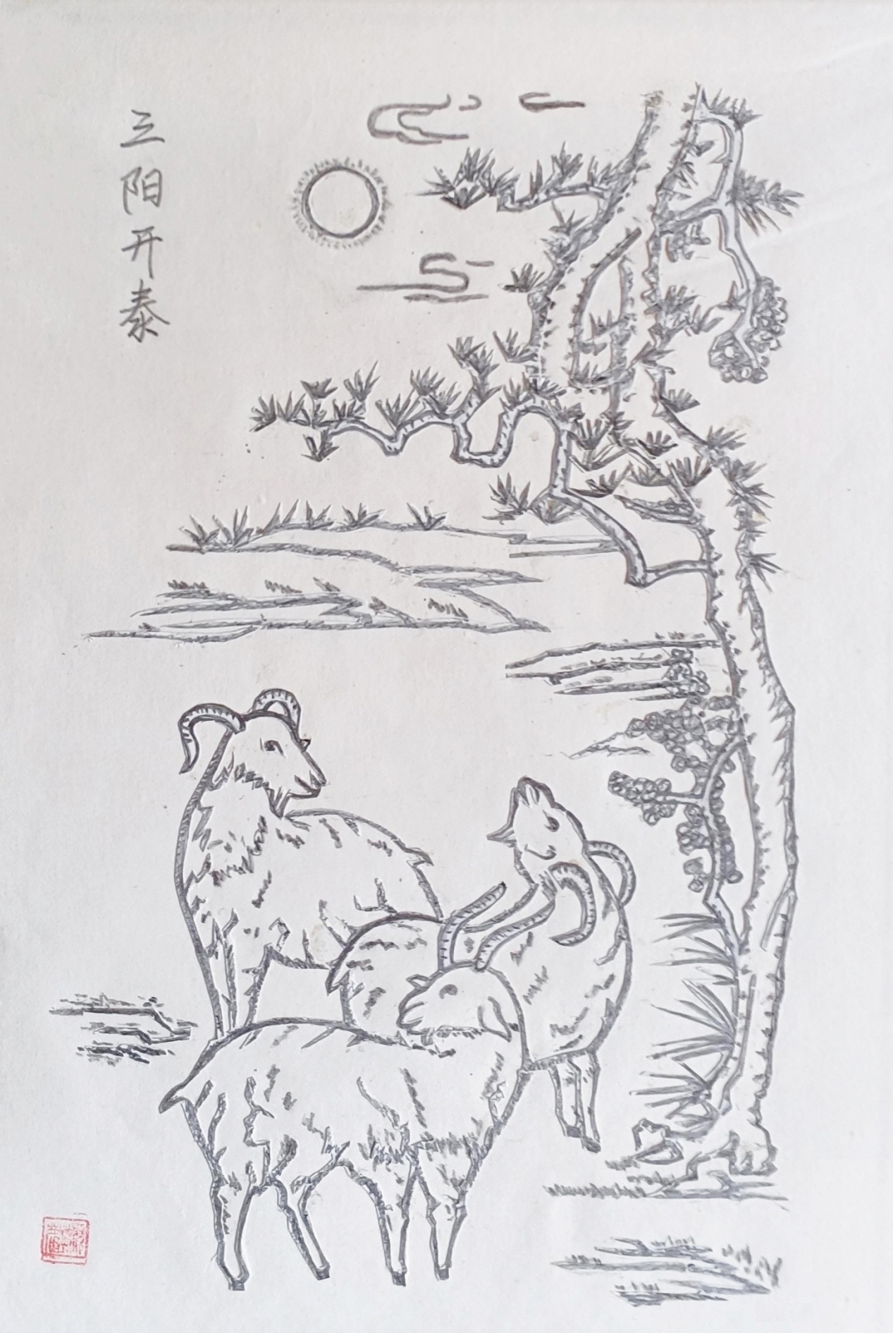 姚顺麟作品:剪纸《三阳开泰》