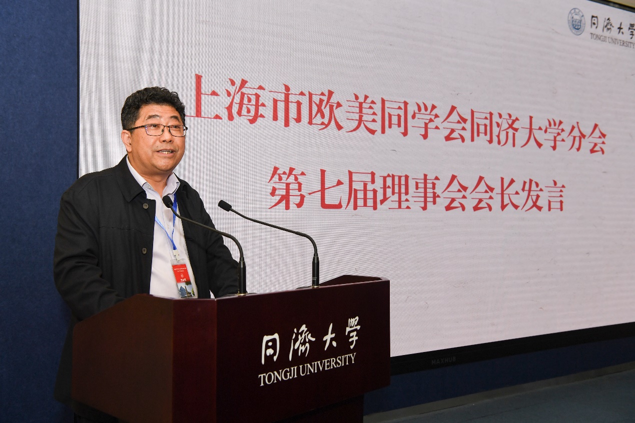 吕培明代表新一届理事会领导班子发言,表示新一届理事会将在上海市欧美同学会及同济大学党委的坚强领导下,同心同德、同行同向、精诚团结、认真履职,不断提升分会服务管理能效,继续团结广大留学归国人员,进一步发挥欧美同学会“留学报国人才库、建言献策智囊团、民间外交生力军”的作用,把组织动员优势、人才智力优势、广泛联络优势转化为服务学校、上海乃至全国中心任务的强大力量。