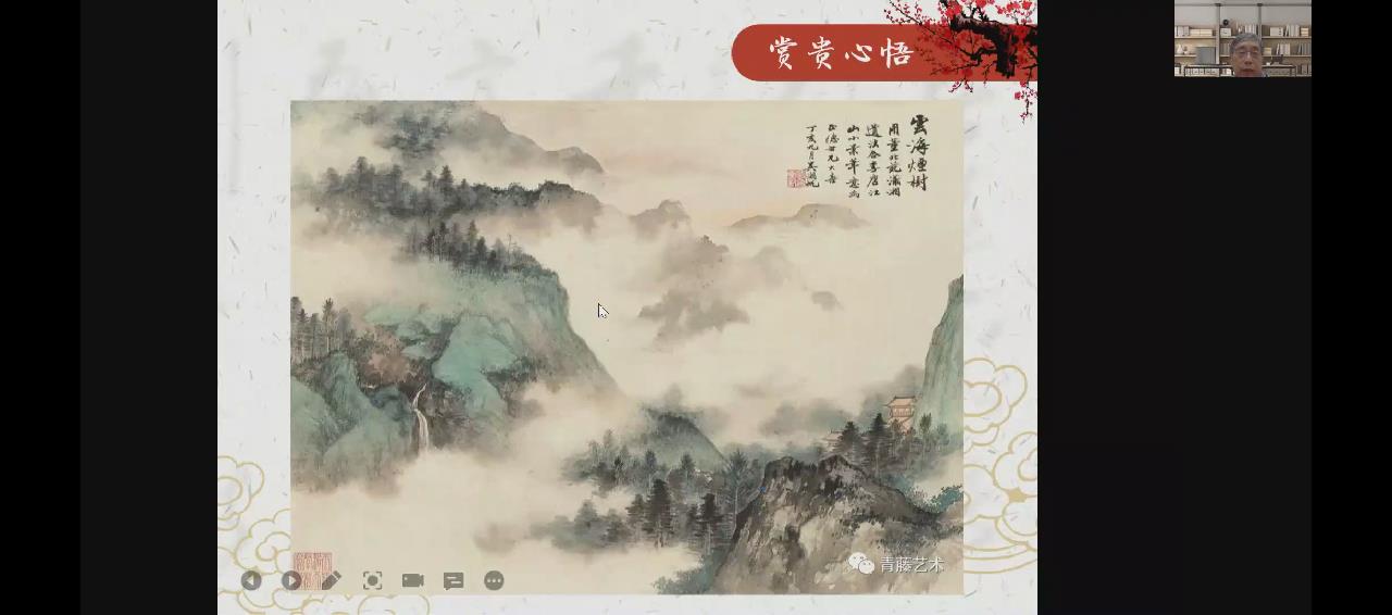 讲座中,江理平带领大家品鉴了一百多幅古今优秀佳作,并从笔墨、布白、气韵等角度介绍了运笔技法、章法构图等,让大家领略到传统书画的独特魅力。离退休干部党工委、离退休工作办公室负责人,离退休教职工,兄弟院校老师等在线听讲并参与互动交流。