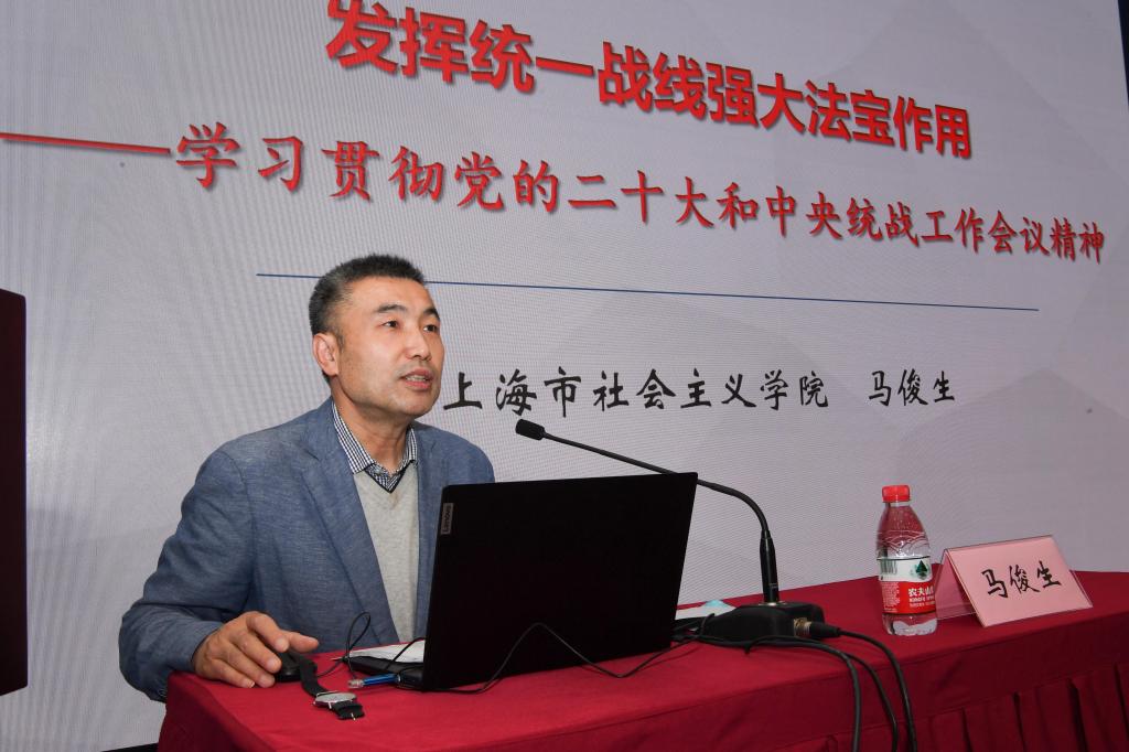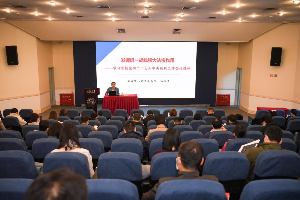 11月14日下午,同济大学统一战线成员及统战工作者学习党的二十大精神专题研修班在四平路校区举行。上海市社会主义学院副院长马俊生应邀作专题辅导报告。学校各民主党派成员代表、无党派人士代表及二级党组织统战委员参加培训。