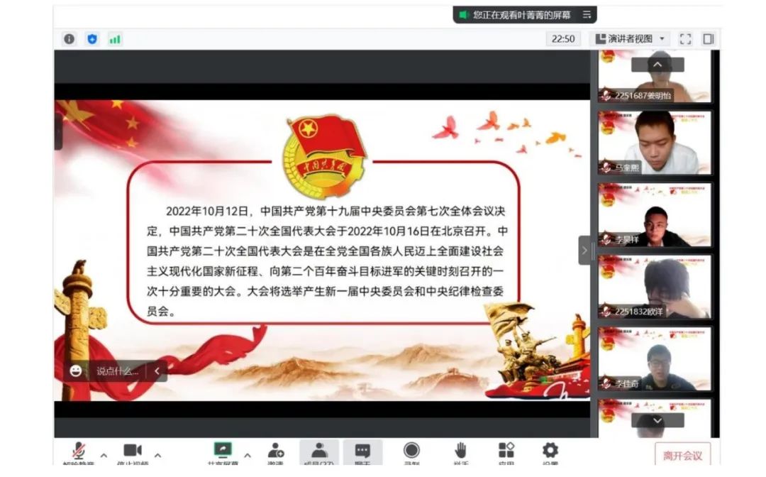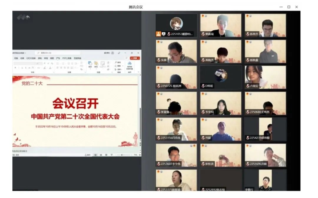 同和学堂理科6班团支部组织全体同学观看学习了党的二十大开幕会,解读了党的二十大胜利召开的重要意义,深入学习了二十大精神。习近平总书记在报告中总结了党和国家在过去十年的伟大成就,同学们纷纷感慨于国家的飞速发展,立志将个人的命运与祖国发展紧密结合,为中国梦的实现贡献青春力量。
