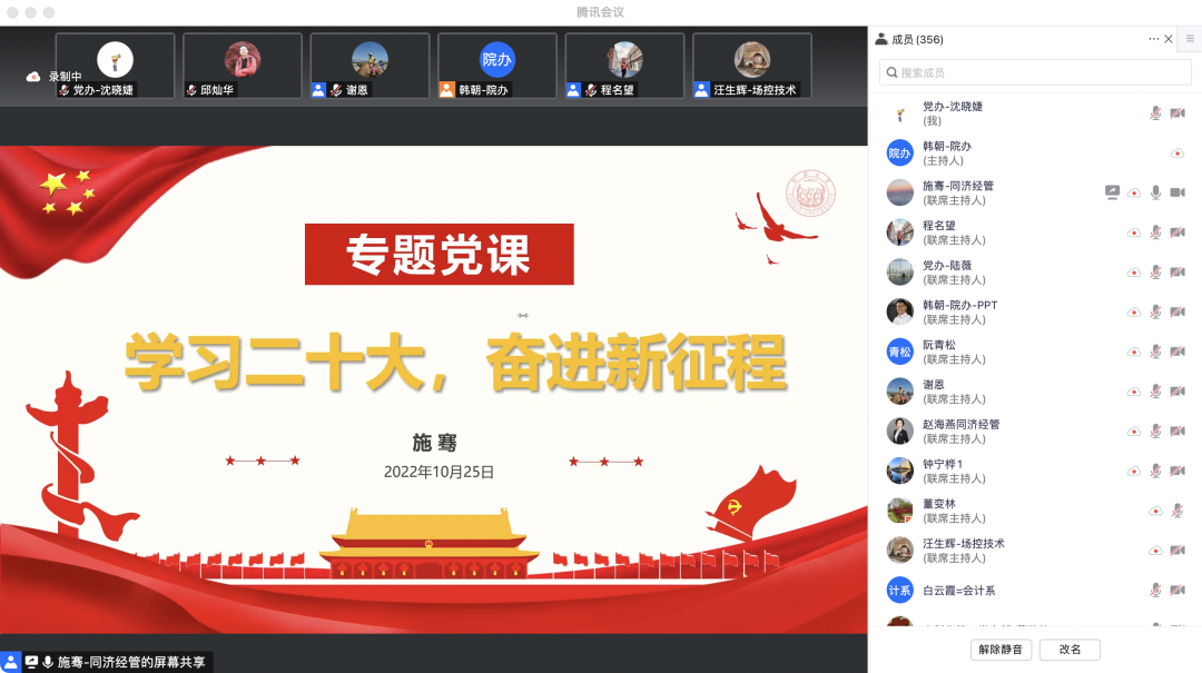 11月8日,研究生第十七党支部联合研究生第五党支部共同开展题为《为全面建设社会主义现代化国家而团结奋斗——学习贯彻党的二十大精神》的专题党课,带领与会党员、发展对象、入党积极分子同领悟、共学习,从深刻理解党的二十大的时代背景和重大意义、全面把握二十大报告的战略部署与重点内容、不断增强学习贯彻二十大精神的思想自觉与行动自觉等三个方面展开讲解,以经管学子的视角读懂、读深、读透党的二十大报告,深刻把握二十大精神内涵。