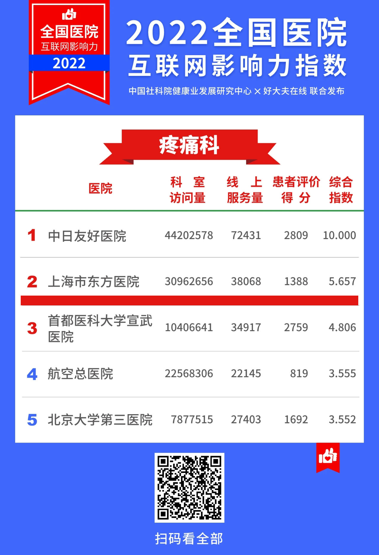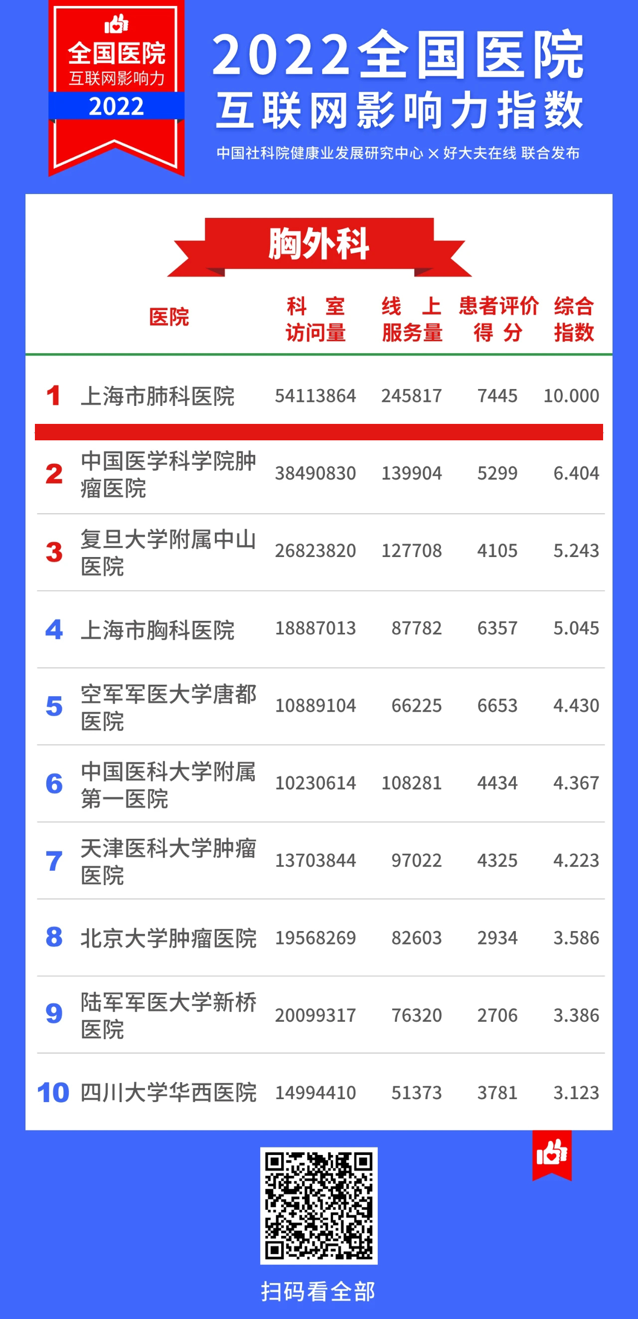 同济7个专科强势入围“2022全国医院互联网影响力指数”排行榜