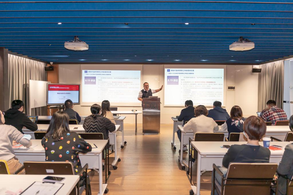 讲座围绕新时代宣传思想工作的使命任务、新时代意识形态阵地的建设管理、网络育人与风险防范的对策建议三部分展开。李睿表示,我们党历来重视新闻宣传工作,党的十八大以来关于宣传思想工作先后提出五次重要讲话,主要聚焦媒体融合、现代传播体系、国际传播能力建设,党的二十大报告中强调要做好意识形态工作,本着国家立心、民族立魂的原则,巩固壮大奋进新时代主流思想舆论,增强中华文明传播力影响力。他认为要加强阵地建设管理,从教学教材、讲座论坛、媒体规范表述、电子宣传阵地、网络舆情案例分享等方面严把意识形态关。谈到网络育人与风险防范的对策建议,李睿表示要充分考虑当前师生群体的新特点,做到线上监测与线下沟通相结合、思想引导与解决需求相结合、正面宣传与舆情应对相结合、一人一策与多维联动相结合,提升媒介素养新思路,做好新时代背景下青年大学生网络育人工作。
