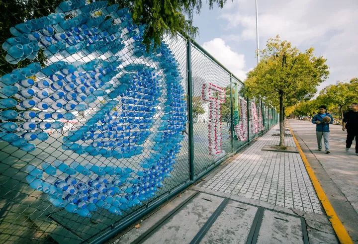 利用废弃水瓶的再创作传达环保理念的球场