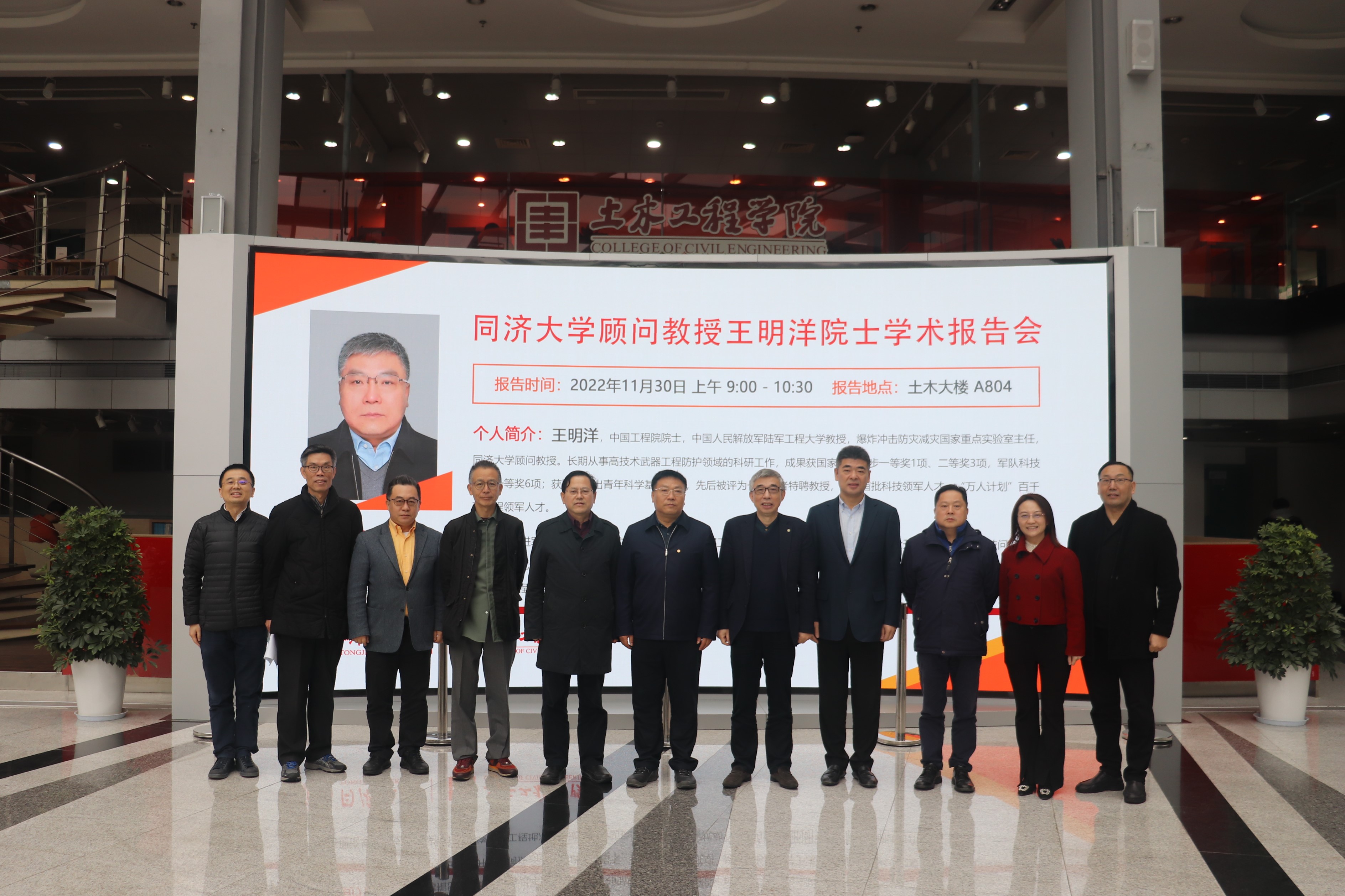 11月30日上午,土木工程学院举办中国工程院院士、同济大学顾问教授王明洋院士学术报告会。中国工程院朱合华院士,华东建筑集团股份有限公司总工、全国工程勘察设计大师王卫东,同济大学副校长顾祥林,及土木工程学院师生参加了活动。