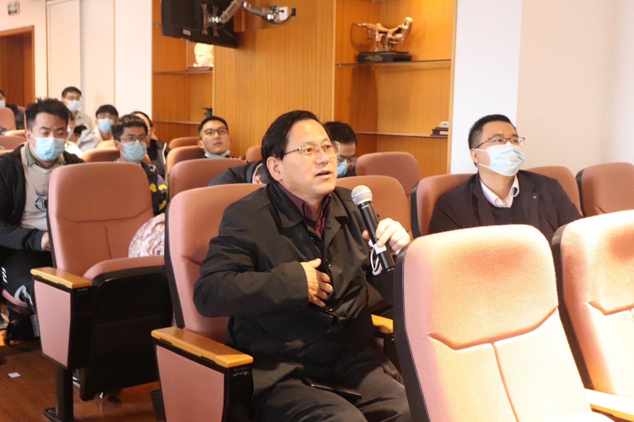 王明洋院士为大家作了题为《防护工程研究新进展》的学术报告。他介绍了现有冲击爆炸防护学科发展历程及其研究现状,简述了目前亟待解决的工程难题,介绍了浅部防护问题中侵爆介质力学行为演化、侵爆成坑耦合地冲击、钻地弹侵彻模拟相似、超高速弹成坑模拟相似、钻地炸弹工程防护、超高速弹工程防护等问题与技术的研究成果,总结了深部防护问题中地冲击耦合高地应力、开挖卸荷耦合高地应力等问题的最新研究进展。精彩的报告内容受到师生热烈欢迎与广泛好评,现场讨论互动活跃。
