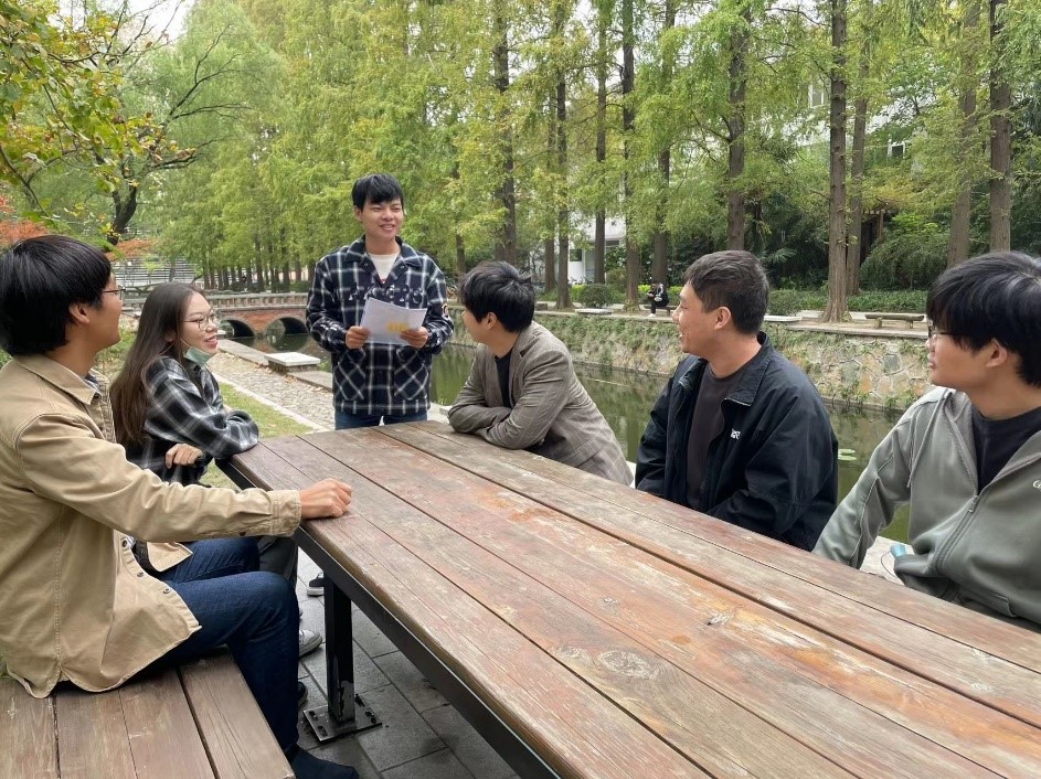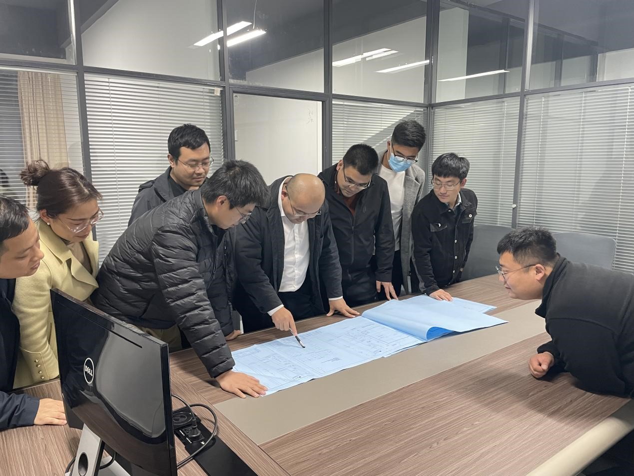 团队负责人王超(右四)带领团队研讨加氢站建设方案
