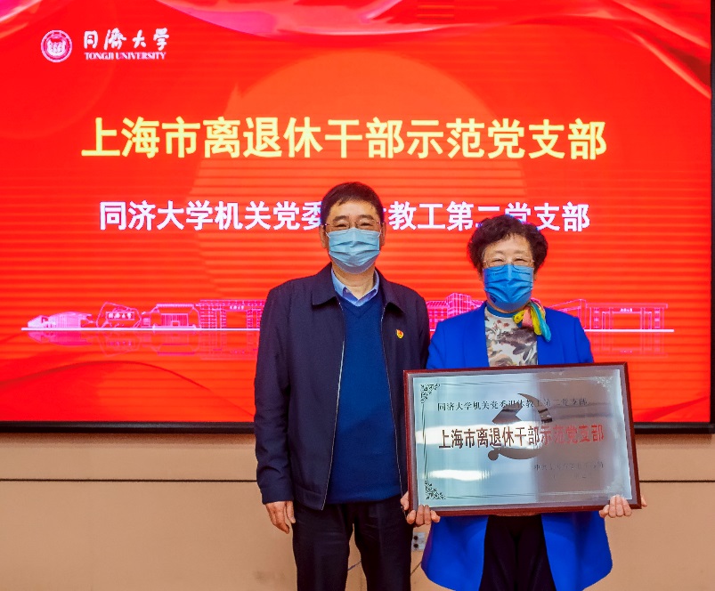 会上还举行了离退休干部示范党支部授牌仪式。吴广明分别为2022年度上海市离退休干部示范党支部和市教卫系统离退休干部示范党支部颁授了奖牌。在上海市委老干部局开展的首批离退休干部示范党支部创建中,我校土木工程学院地下系退休教工党支部、机关党委退休教工第二党支部获得“上海市离退休干部示范党支部”称号,医学院退休教工党支部获得“上海市教卫系统离退休干部示范党支部”称号。