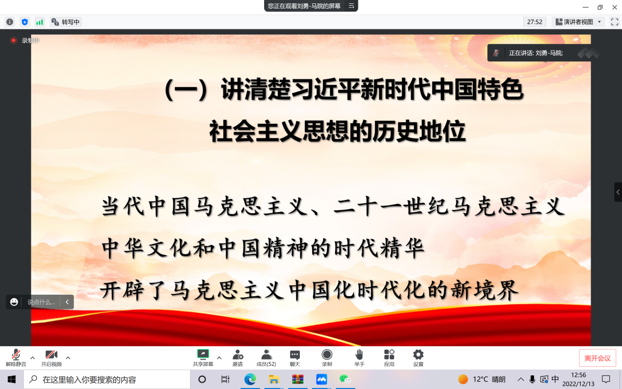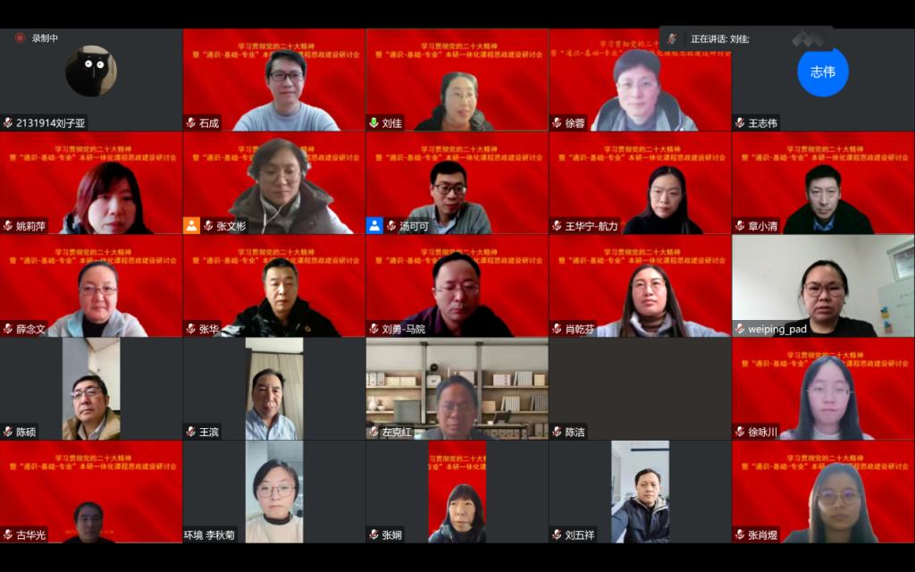为进一步学习贯彻落实党的二十大精神,12月13日,学习贯彻党的二十大精神暨“通识-基础-专业”本研一体化课程思政建设研讨会在我校召开。来自同济大学和东南大学的50余位老师在线参加了会议。
