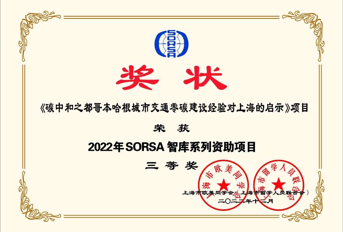 会议全面回顾了2022年上海市欧美同学会的工作并对2022年度SORSA研究中心、民间外交工作进行表彰。欧美同学会同济大学分会在SORSA智库优秀项目奖、建言献策优秀成果奖、民间外间优秀项目奖等奖项上均有收获。交通运输工程学院李辉负责的《碳中和之都哥本哈根城市交通零碳建设经验对上海的启示》项目荣获SORSA智库系列资助项目三等奖;中西学院俞吉恩荣获建言献策优秀成果奖;同济大学分会承办的《共绘“中墨友谊桥”,凝结两国人民情——纪念中墨建交50周年民间外交活动》民间外交活动资助项目荣获优秀项目奖。
