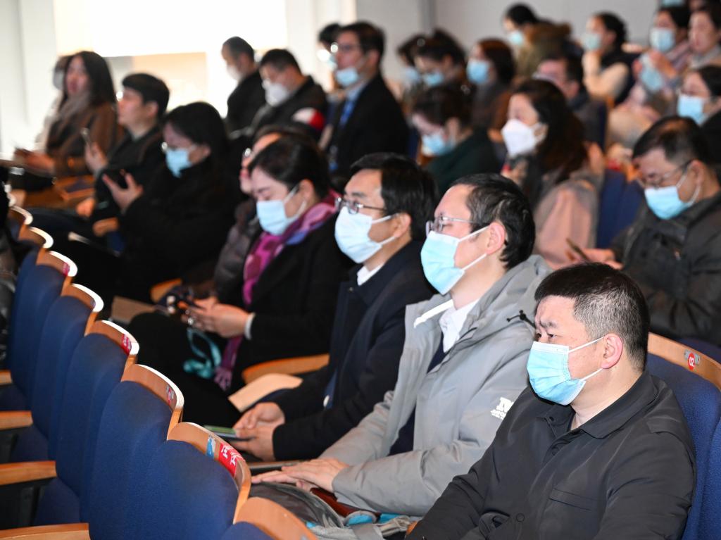 教师工作部部长、人事处负责人结合中央人才工作会议精神和党的二十大精神作人事人才工作报告,全面总结学校近年来人事人才工作现状及成果,通过横向纵向比较,深入分析了新形势下学校人事人才工作面临的挑战,并详细介绍了下一步工作举措。