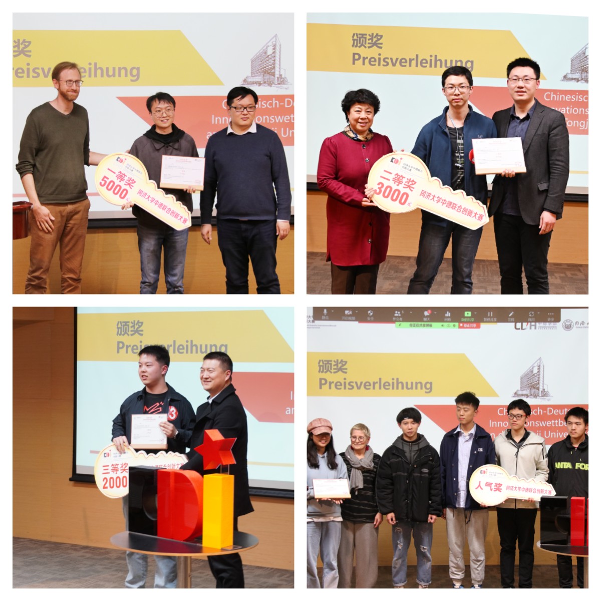 在上海杨浦同济科技园有限公司、校图书馆、创新创业学院、校友会、伙伴高校、中德之窗和中德校园等机构的支持下,中德学部于2022年启动了同济大学中德联合创新大赛。大赛旨在为同济大学和伙伴高校学生和青年校友打造一个充分展示创新能力、创新活力和创新多样性的跨学科、跨文化的交流平台。本届大赛获得了中外学生的踊跃参与,共有来自22个学院的近40个团队报名参加。经过初审,共有13个团队入围决赛。中德学部为参赛团队组织了文献调研与综述、创新创业、路演技巧等主题培训辅导,组建了校内外导师团为团队提供一对一的答疑辅导。