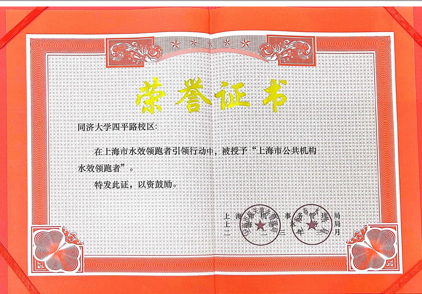 同济大学四平路校区荣获“上海市公共机构水效领跑者”称号